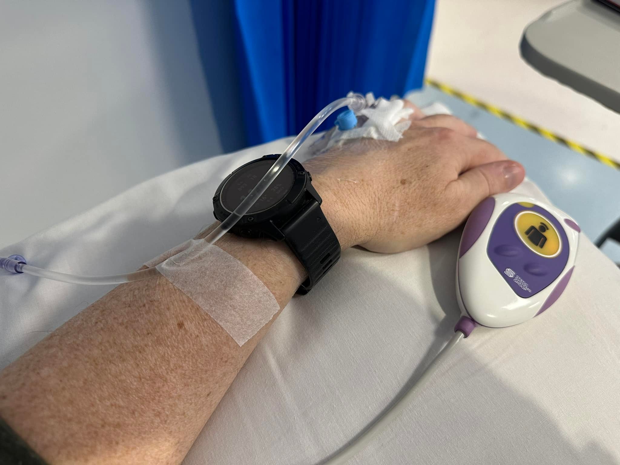 As this was my first session, there was a lot of paperwork to go through. After that, I got a washing bowl of warm water to dip my hands in so it’s easier to attach the cannula. With the cannula inserted, I got a couple of paracetamol to take, and then they brought the drug bags which are tightly controlled for obvious reasons